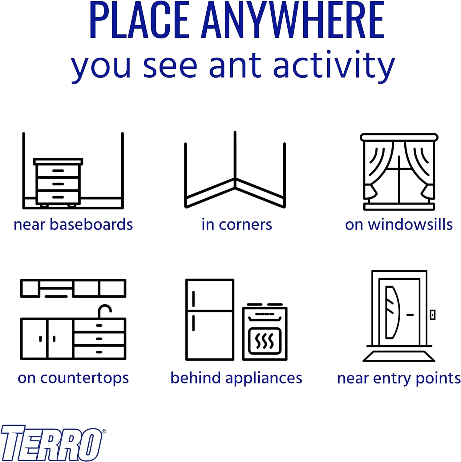 • Use Throughout Your Home – Place stations near areas where you’ve seen ant activity including along baseboards, in corners, on counters, and more